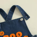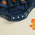 🎃 Spooky-Cute Halloween Denim Romper for Your Little Pumpkin!