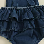 The ruffled overall design adds a sweet, trendy flair, while the soft denim fabric keeps your baby cozy. Perfect for trick-or-treating, fall photoshoots, or casual autumn outings!