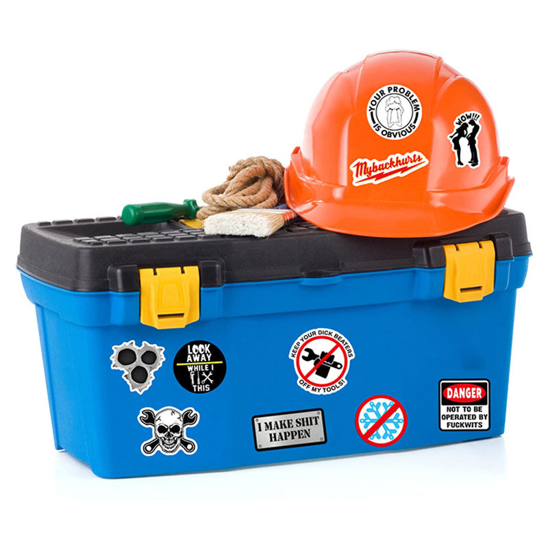 MULTI-FUNCTIONAL USE: These stickers adhere to most smooth surfaces such as hard hats, toolboxes, helmets, cars, toilet surface and more. They are versatile and can be used for labeling various items.