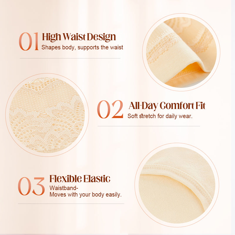 FULL COVERAGE SUPPORT Confidence-boosting fit for daily wear. Designed for fuller figures, these high waisted panties offer excellent tummy support and coverage. The extended rise helps smooth your midsection while staying securely in place¡ªmaking them ideal for both comfort and shaping throughout the day.