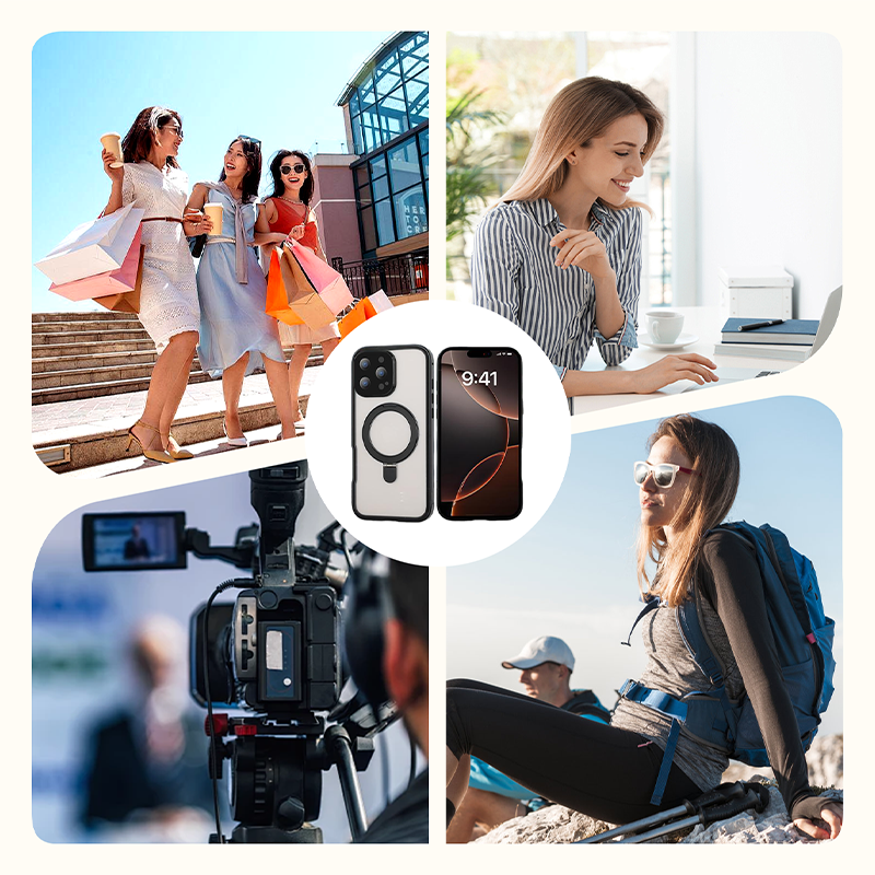 BUILT-IN STAND FOR HANDS-FREE VIEWING -Features a sleek, foldable kickstand on the back that props your phone at the perfect angle—ideal for video calls, streaming, or browsing without holding your device.
