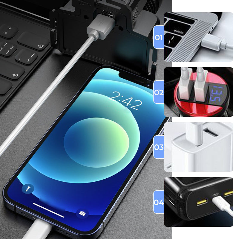 30W HIGH-BRIGHTNESS LED WITH ADJUSTABLE FOCUS:Β Equipped with a powerful 30W LED light source, this headlamp delivers ultra-long-range visibility of up to 1000 meters. The telescopic zoom function allows you to switch between spotlight and floodlight modes, catering to different lighting needs.